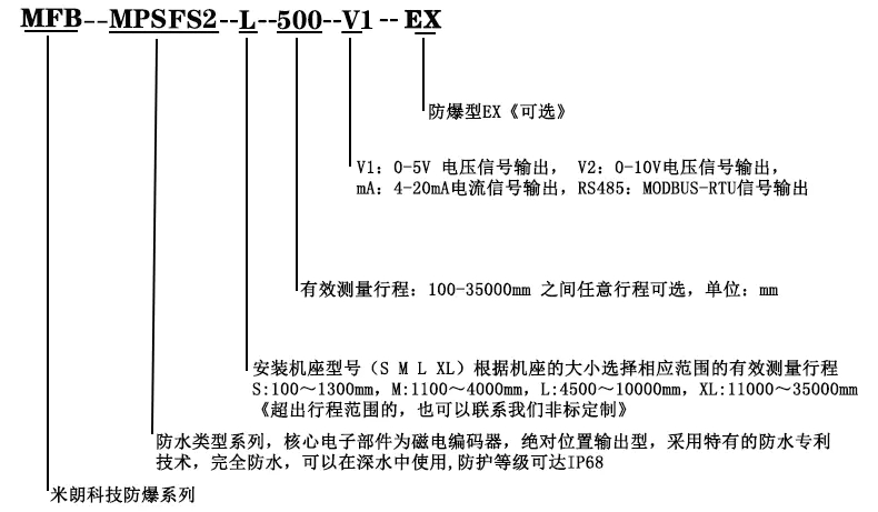 二、MPSFS2系列防水型拉線式位移傳感器技術(shù)參數(shù):